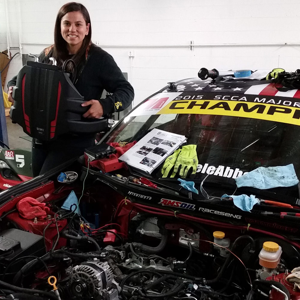 In addition to the added boost, Abbate’s FRS flaunts a few new components that provide excellent performance and aesthetics to the car. A custom wrap designed and provided by Reklaw Design , accentuates a loud and aggressive look to match the race car’s new power plant. As avid supporters of all those that serve this country, the FRS carries the infrared flag on its roof as a tribute and reminder of support to all those deployed overseas defending our country. The DV style SEIBON Carbon (use referral code: ABBATE30 for discounts!) dry carbon hood helps alleviate some of the added weight to the nose of the car, while providing fantastic ventilation for the FA20 motor. Seven new Elite series (Auto Meter) gauges and mounts provide Michele with all of the vital information and data she needs on the track. While off track, the GRR Racing team is thankful to be styling with fully custom canopies and flyer flags by Action Sports Canopies, and also, the team’s favorite tunes will always be jamming through our new Scosche waterproof Boom Bottles! MCC Motorsports has also provided us support with all of our aftermarket and OEM needs. Lastly, we are also excited to welcome Sin City DIY Auto Repair to our team. This is a shop, local to Las Vegas, where you can make an appointment to use their lifts, space, and tools! Our livery reveal video was shot at their location and it is always a clean, fun, and safe environment.